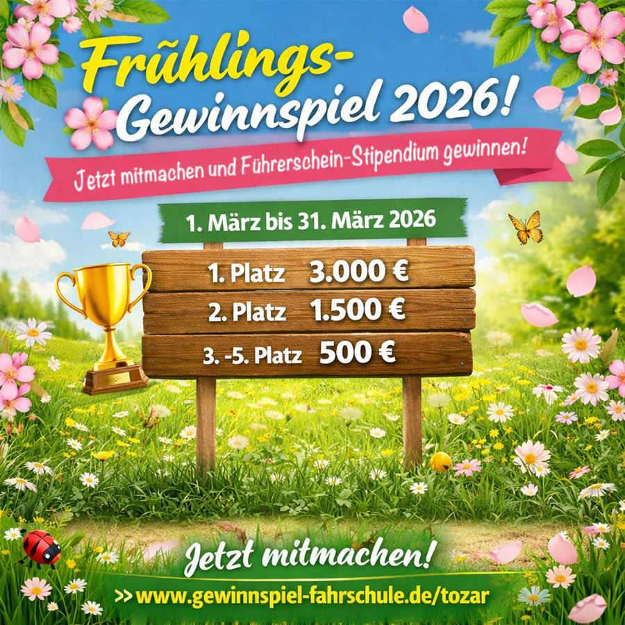 Frühlings-Gewinnspiel 2026 bei der Fahrschule Tozar